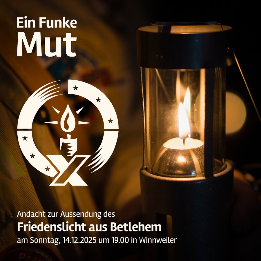 Am 3. Adventssonntag (14. Dezember) um 19.00 Uhr wird das Friedenslicht auch in unserer Kirche in Winnweiler ankommen. Die Gemeinschaft unserer Messdiener*innen lädt Kinder, Jugendliche und Erwachsene ein, das Licht in einer kleinen Andacht zu feiern und gerne mit nach Hause zu nehmen und weiterzuverteilen. Damit es auch bei uns in möglichst vielen Häusern und Familien leuchtet. Bringt dazu gerne eine Kerze (am besten in einer windgeschützten Laterne) mit.