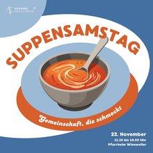 Das ist unser Suppensamstag: Am 22. November von 11.30 bis 14.00 Uhr im kath. Pfarrheim in Winnweiler.